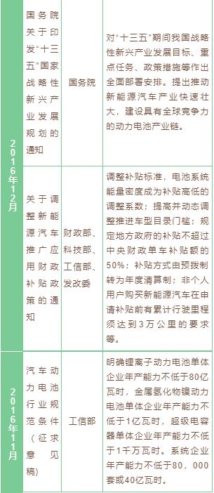 鋰離子動力電池是新能源汽車的核心部件,國家為加快新能源汽車產(chǎn)業(yè)化進(jìn)程,頒布了一系列相關(guān)政策性文件,大力支持我國新能源汽車及動力電池行業(yè)的健康快速發(fā)展。同時,國家制定政策支持儲能技術(shù)發(fā)展以及產(chǎn)業(yè)化。