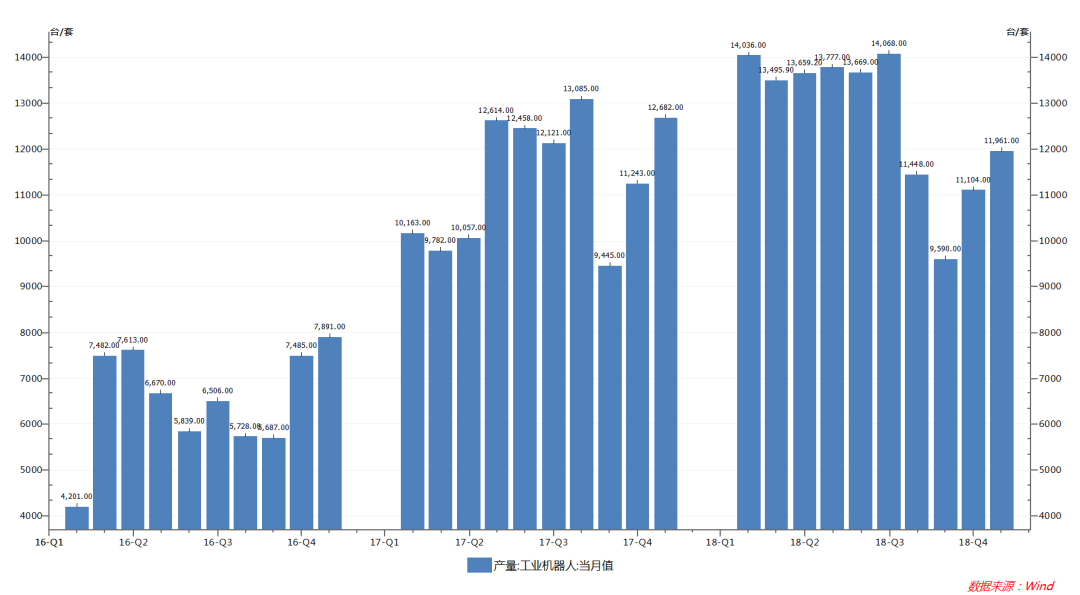 2018年1-12月,我國工業(yè)機器人產量達14.7萬臺,同比增長12.2%;其中12月份產量達11961臺。受國內宏觀經濟下行,下游汽車、3C、新能源等行業(yè)投資放緩和中美貿易戰(zhàn)的影響,國內工業(yè)機器人行業(yè)發(fā)展壓力逐步顯現,6月、7月、8月增幅相比前幾個月35%的增速大幅下降。但工業(yè)機器人行業(yè)短期的增速放緩并不能改變機器代人的大趨勢。我國自動化改造空間巨大,制造業(yè)轉型升級迫切;人口紅利逐步消失,老齡化問題嚴重,勞動力出現短缺;疊加國家政策的大力支持,我國工業(yè)機器人行業(yè)未來發(fā)展空間仍然巨大。