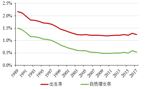 另一方面,中國近年來的人口出生率和自然增長率也呈現不斷下降的趨勢,2017年比2016年出生人口減少了63萬人,人口出生率僅為12.4‰,同比降低0.5‰,這一數據比日本的出生率還要低。我國的人口自然增長率更是下降到5.3‰,長期的低生育水平直接加大了對未來我國勞動力不足的擔憂。