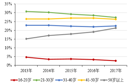 農民工是我國城鎮(zhèn)化進程中的勞動力主力軍,然而近年來,農民工群體也呈現出逐步老齡化的特征,農民工平均年齡不斷提高,50歲以上農民工所占比重提高較快。2017年農民工平均年齡為39.7歲,比16年提高0.7歲。從年齡結構看,30歲以下的年青一代農民工所占比重為29.9%,比16年下降2.0個百分點;40歲及以下農民工所占比重為52.4%,比16年下降1.5個百分點;50歲以上農民工所占比重為21.3%,比16年提高2.2個百分點,自2014年以來比重提高呈加快態(tài)勢。農民工老齡化逐年加劇,直接影響了社會勞動力的供給,機器替代人工成為解決這一問題最為有效的方式,也是我國制造業(yè)轉型升級的必經之路。