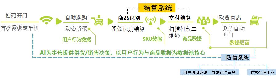 國(guó)內(nèi)目前的無(wú)人零售店的消費(fèi)流程主要分為:掃碼認(rèn)證或人臉識(shí)別、挑選商品、根據(jù)數(shù)據(jù)自動(dòng)結(jié)算這些環(huán)節(jié)。對(duì)于商家而言,可以節(jié)約人力成本和沉淀消費(fèi)數(shù)據(jù),對(duì)于消費(fèi)者而言,則可以增強(qiáng)體驗(yàn)感和減少排隊(duì)時(shí)間。