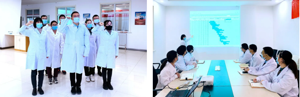 任務(wù)明確以后,檢測中心按照客戶規(guī)定的時間要求倒排工期,全面梳理采樣、接樣、制樣、檢測、記錄、報告等全流程工作量,明確目標任務(wù)、優(yōu)化方案、科學編制建設(shè)項目進度計劃?!笆弧眹鴳c節(jié)假日期間,檢測中心全員放棄假日休息匯聚實驗室,召開了項目啟動“誓師會”,由中心副主任對全員進行談心談話,闡明任務(wù)的重要性和艱巨性,并制作任務(wù)甘特圖,直觀展示任務(wù)節(jié)點和要求,實行掛圖作戰(zhàn),全員攻堅;同時,組織成立黨員突擊隊,由黨小組組長帶頭進行莊嚴宣誓,全體黨員用錚錚的誓言,心潮澎湃地表達了沖鋒在前、示范在先的決心,紛紛表示將以百倍的信心和干勁完成任務(wù)。誓師會結(jié)束后,中心全員隨即啟動檢測任務(wù),將檢測前期工作全部準備到位。